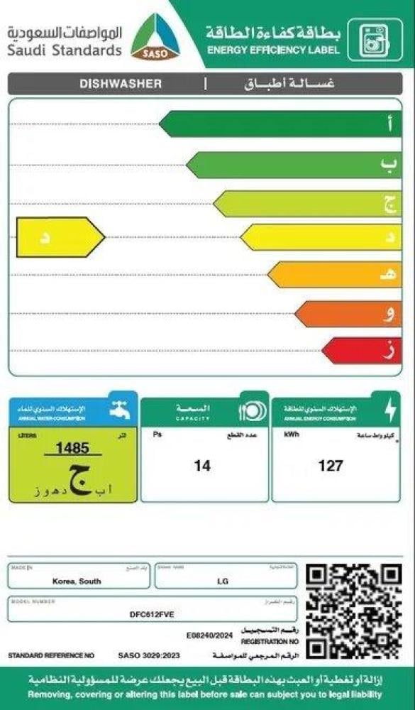 • سعة 14 مكاناً: تستوعب كمية كبيرة من الأطباق، مما يجعلها مناسبة للعائلات الكبيرة.