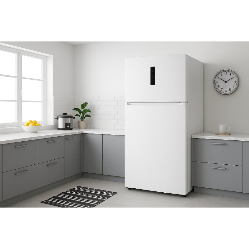 2- تصميم أنيق باللون الأبيض: ثلاجة توشيبا تضفي لمسة من النقاء والبساطة على مطبخك.