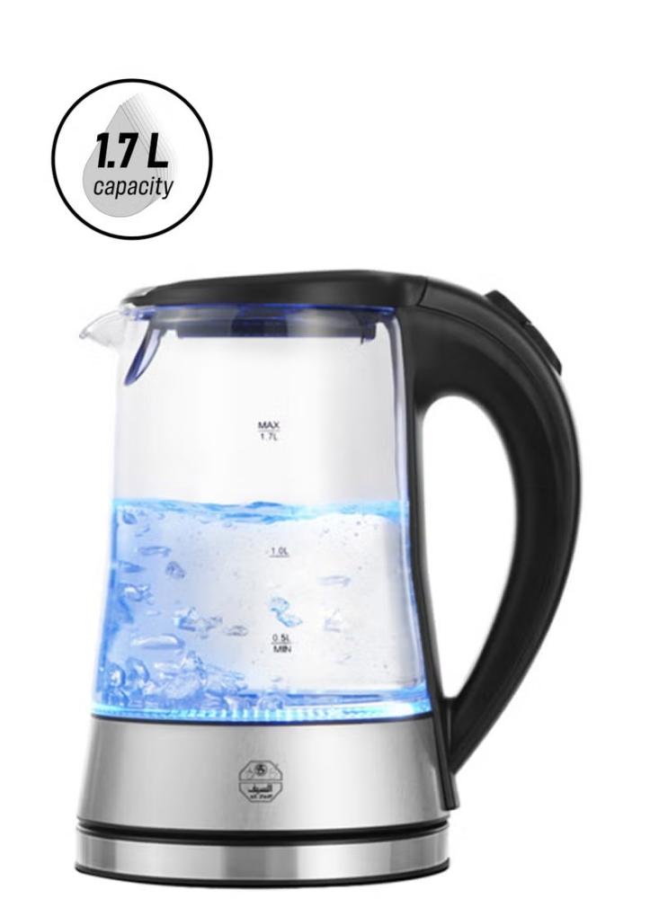 غلاية كهربائية السيف 1.7 لتر بقوة اقصاها 2200 واط مع قاعدة لون فضي واسود واضاءة داخلية