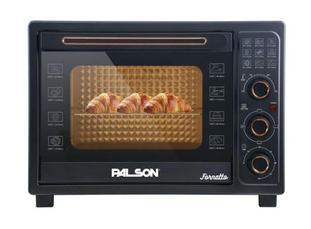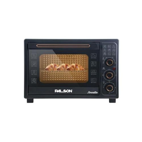 فرن كهربائي بالسون 58 لتر، 2100 واط ، باب زجاجي مزدوج مؤقت مع جرس، لون أسود بالكامل، 5 عناصر تسخين مستقيمة من الفولاذ المقاوم للصدأ، مع صينية خبز موديل 40023