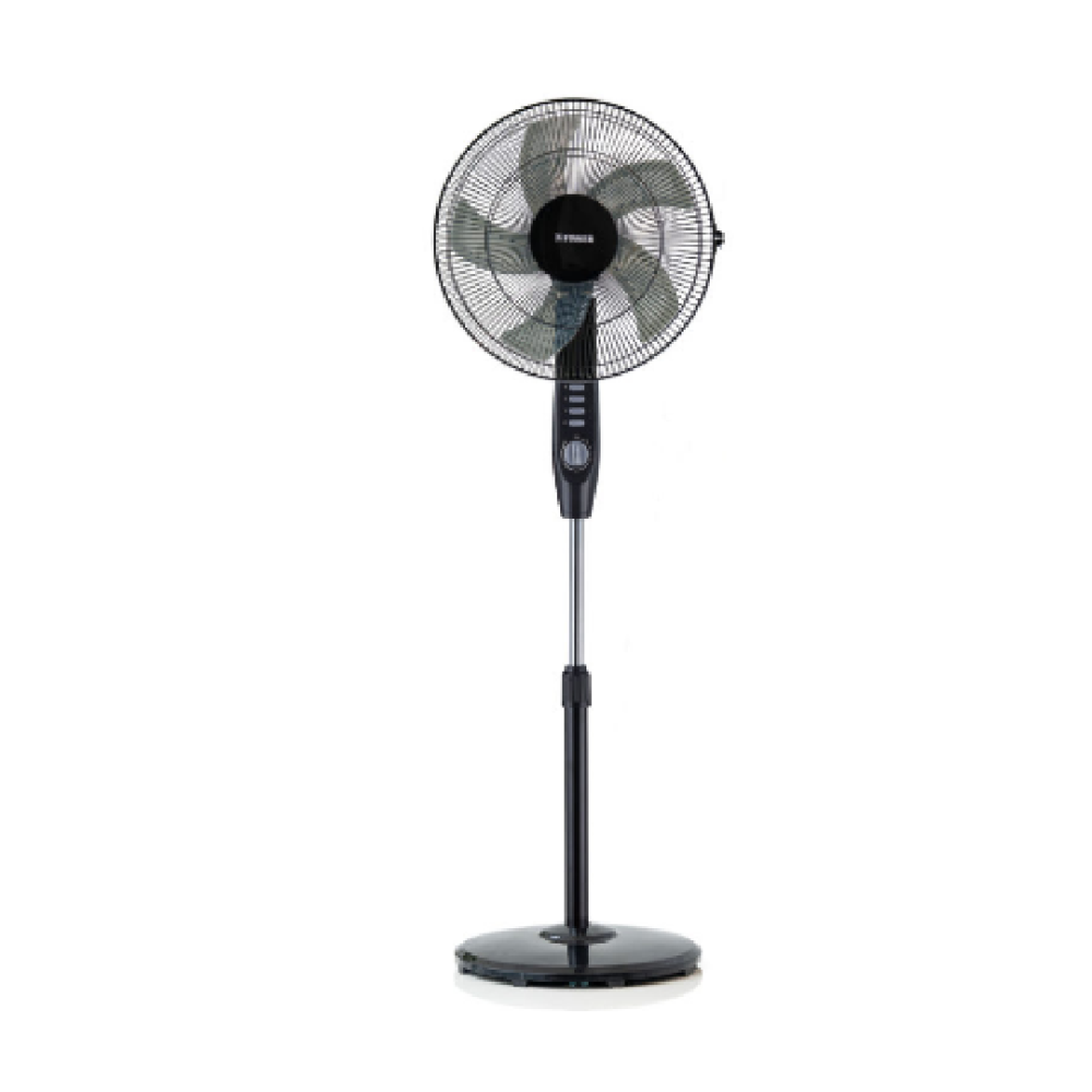 مروحة فيشر العمودية ذات 5 شفرات تمنحك توزيع هواء فعّال بثلاث سرعات مختلفة، وتصميم أنيق باللون الأسود، مع ريموت كنترول لراحة تحكم من بعيد.