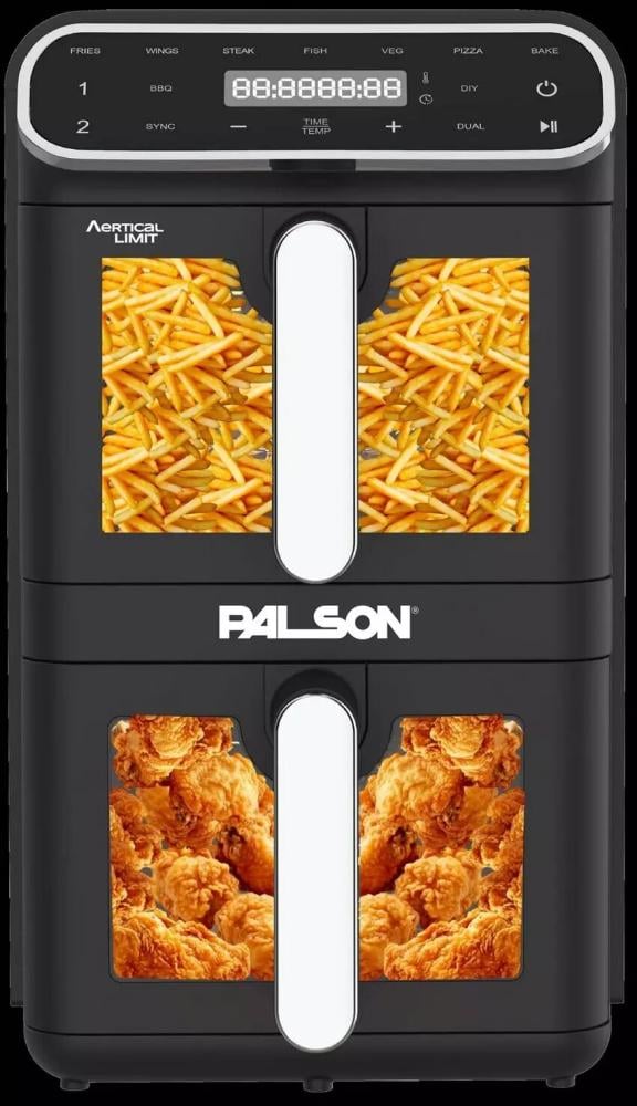 قلاية هوائية بالسون عمودية مزدوجة الأدراج، سعة 11 لتر (5.5 لتر + 5.5 لتر)، 2460 واط، مع واجهة شاشة لمس رقمية، 9 وظائف طهي موديل 40059