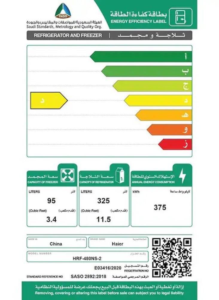 المواصفات الفنية للثلاجة هاير HRF-480NS-2